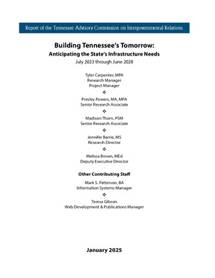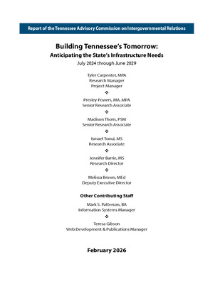 Special Reports on Infrastructure published by the Tennessee Advisory Commission on Intergovernmental Relations, including the annual 'Building Tennessee's Tomorrow' Report.