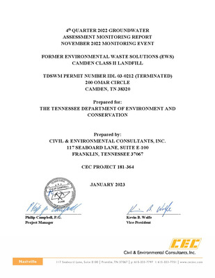 Second Quarter 2023 Groundwater Assessment Monitoring Report May 2022 Monitoring Event