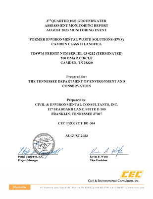 Third Quarter 2023 Groundwater Assessment Monitoring Report August 2022 Monitoring Event