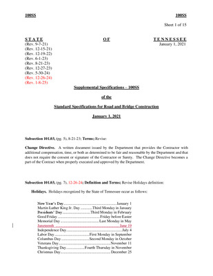 Supplemental Specifications (100SS) of the Standard Specifications for Road and Bridge Construction, January 1, 2021