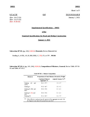 The Standard Specifications for Road and Bridge Construction and its supplements published by the Tennessee Department of Transportation.