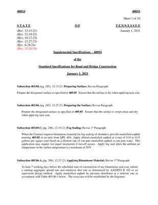 Supplemental Specifications (400SS) of the Standard Specifications for Road and Bridge Construction, January 1, 2021