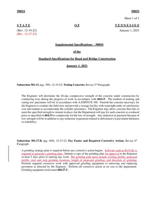 Supplemental Specifications (500SS) of the Standard Specifications for Road and Bridge Construction, January 1, 2001 Rev. 12-27-23