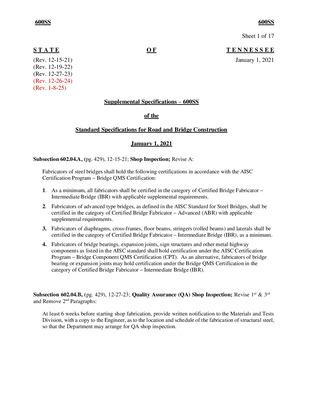 Supplemental Specifications (600SS) of the Standard Specifications for Road and Bridge Construction, January 1, 2021 Rev. 1-8-25