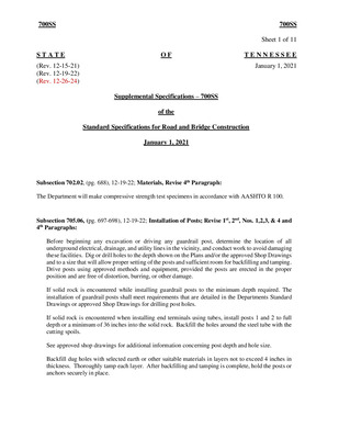Supplemental Specifications (700SS) of the Standard Specifications for Road and Bridge Construction, January 1, 2021