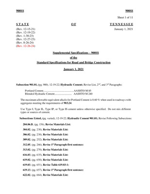 Supplemental Specifications (900SS) of the Standard Specifications for Road and Bridge Construction, January 1, 2021