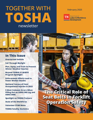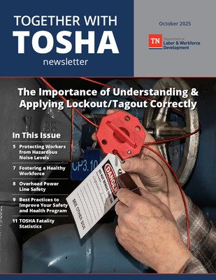 The Newsletter of the Tennessee Occupational Safety and Health Administration (TOSHA), published by the Tennessee Department of Labor & Workforce Development.