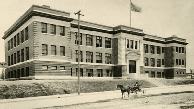W.S. Bruce School, built in 1908. This building was the architectural twin of the Maury School on N. Bellevue. This building was demolished and the school moved across the street to a new, larger facility. The original location was at 1206 Carr Avenue.