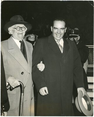 Memphis political boss E.H. Crump (left) and Tennessee Governor Frank Clement at the annual football game held to raise money for the blind at Crump Stadium, Memphis, Tennessee, on December 4, 1953. Photographer: Rudolph Vetter.