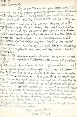 Correspondence, P. Erdős to H. Davenport, 1938 December 14