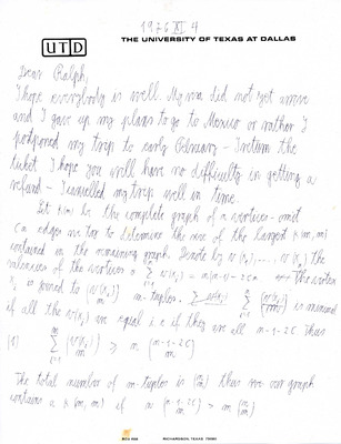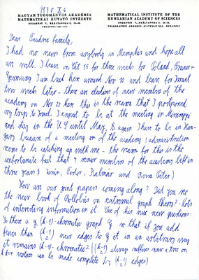 Correspondence, P. Erdős to R. Faudree, 1976 November 4
