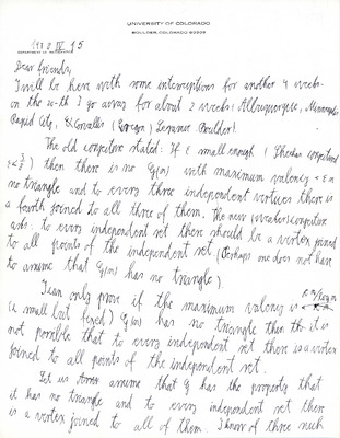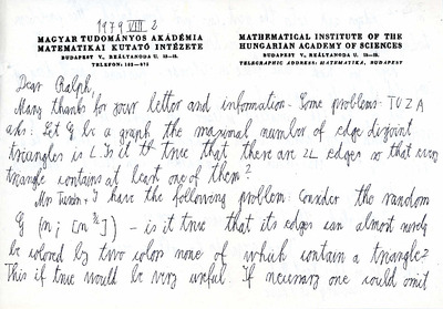Correspondence, P. Erdős to R. Faudree, 1979 August 2