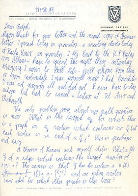 Correspondence, P. Erdős to R. Faudree, 1978 October 6