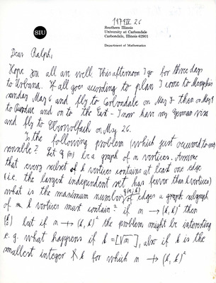 Correspondence, P. Erdős to R. Faudree, 1979 May 19