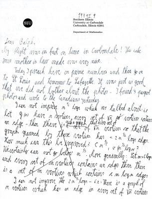 Correspondence, R. Faudree to P. Erdős, 1978 October 17