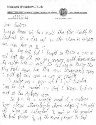 Correspondence, P. Erdős to R. Faudree, 1979 November 29