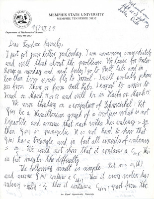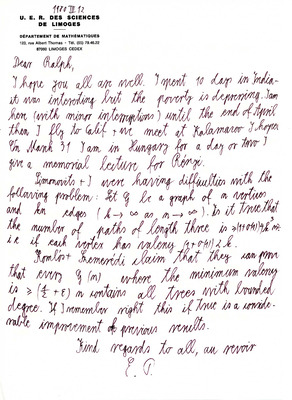 Correspondence, P. Erdős to R. Faudree, 1980 March 12
