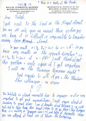 Correspondence, P. Erdős to R. Faudree, 1980 November 13