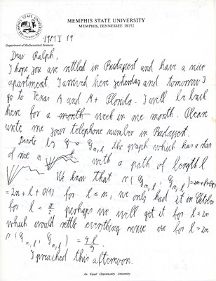Correspondence, P. Erdős to R. Faudree, 1981 January 19