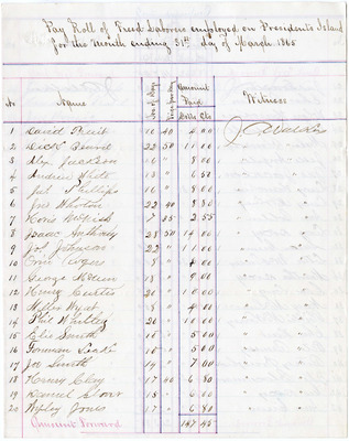 Document, Payroll of Freed-Laborers, President's Island, Memphis, TN, 1865 March 31