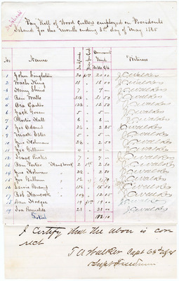 Document, Payroll of Wood Cutters, President's Island, Memphis, TN, 1865 May 31