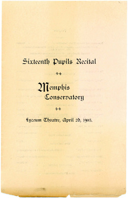 Program of the sixteenth pupils' recital of the Memphis Conservatory, Memphis, Tennessee, performed at the Lyceum Theatre on April 2, 1903.