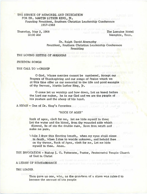Program: Martin Luther King, Jr., memorial service, Memphis, 1968