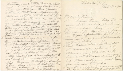 Correspondence from Sister Hughetta Snowden (1848-1926), Peekskill, NY, to a niece, 1915 October 2. She is answering questions that the niece had about Snowden family history and lists out information about several family members. Sister Hughetta states at the end that she hopes she can visit Memphis, TN, around the end of November that year, 1915.