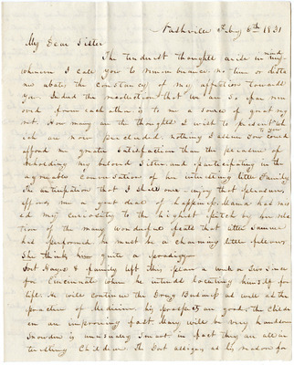 Correspondence to Arthur H. Snowden (1802-1893), New Brunswick, NJ, from his brother, John B. Snowden (1808-1863), Nashville, TN, 1840 May 26.