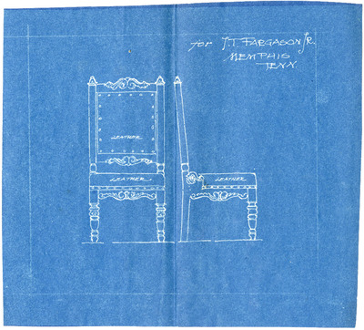 This blueprint was created for the Fargason house on Lamar Boulevard in Memphis, Tennessee; owned by John Thomas Fargason II and Annie Brinkley Snowden Fargason, daughter of R.B. Snowden. This furniture design is for a leather chair for the Fargason house and was created by Bayard S. Cairns, architect and nephew of R.B. Snowden, circa 1905.