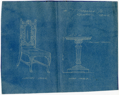 This blueprint was created for the Fargason house on Lamar Boulevard in Memphis, Tennessee; owned by John Thomas Fargason II and Annie Brinkley Snowden Fargason, daughter of R.B. Snowden. This furniture design is for a leather chair and card table for the Fargason house and was created by Bayard S. Cairns, architect and nephew of R.B. Snowden, circa 1905.