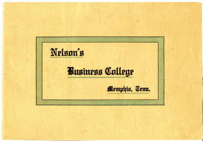 Illustrated promotional booklet published by Nelson's Business College, 292-298 Madison Avenue, Memphis, Tennessee, around 1908.