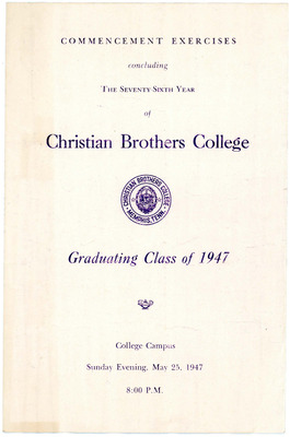 Program of the commencement exercises for Christian Brothers College, Memphis, Tennessee, held on May 25, 1947.