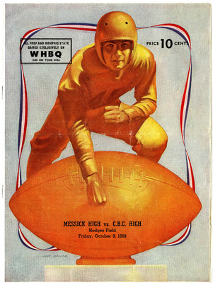 Program of the football game between Messick High School and Christian Brothers College High School played at Hodges Field, Memphis, Tennessee, on October 9, 1953. CBC won 7-6.