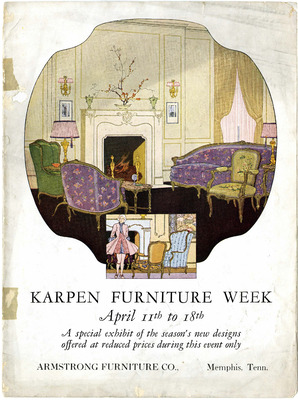 Illustrated advertising booklet published by Armstrong Furniture Company, 64-68 N. Main Street, Memphis, Tennessee, for their Karpen furniture week, April 11-18, 1925.