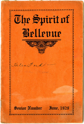 Vol. 2:7, Senior Number, of "The Spirit of Bellevue" published by the students of Bellevue Junior High School, 575 S. Bellevue Boulevard, Memphis, Tennessee, on June 6, 1929.