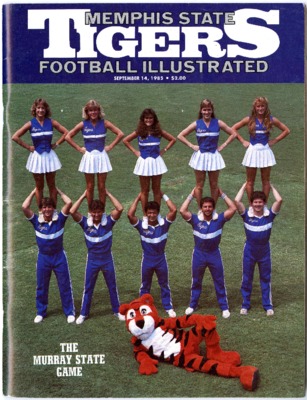 Program for the football game between the Memphis State College Tigers and the Tennessee Polytechnic Institute Golden Eagles played at Overall Field, Cookeville, Tennessee, on October 16, 1954. The Tigers drew the game 25-25.