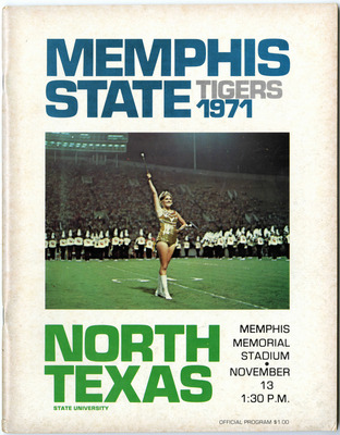 Program for the football game between the Memphis State College Tigers and the Vanderbilt University Commodores played at Dudley Field, Nashville, Tennessee on November 24, 1951. The Tigers lost the game 7-13.